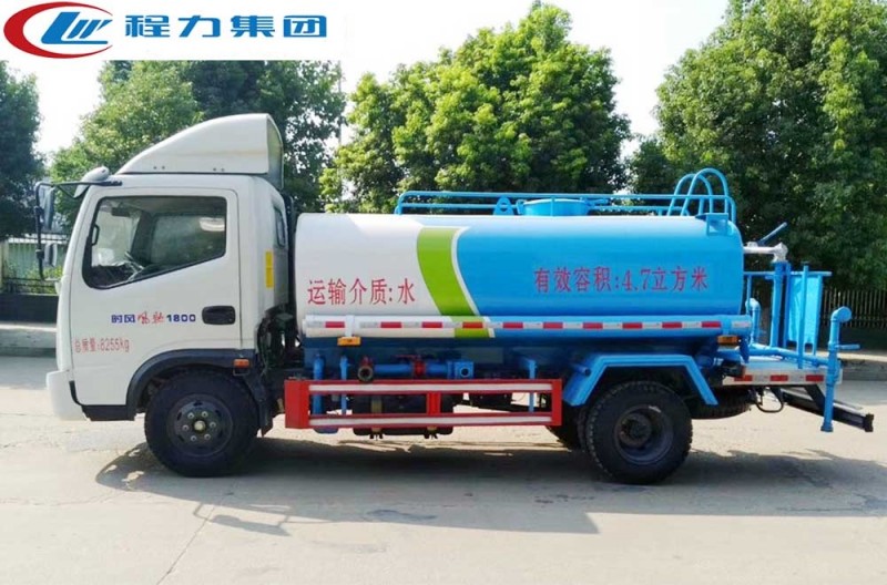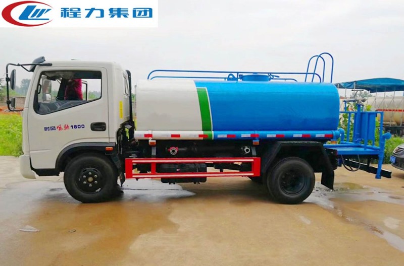 罐體有效容積5立方,罐體采用國標Q235碳鋼,罐體厚度4mm,自吸自排水泵,帶前沖裝置,后灑裝置,左右側噴裝置,尾部帶有安全操作平臺,帶消 防接口,自流口,兩根輸水管,尾部綠化高炮,綠化高炮可調節直沖,大雨,中雨,毛毛雨霧,可以連續調節,360度旋轉;