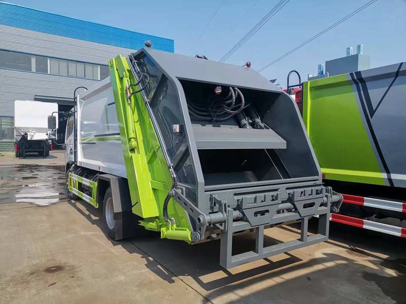 朝柴發動機(全柴,玉柴都可選),五檔變速箱,氣動剎車,帶助力,7.00R16鋼絲胎,帶ABS;箱體國標碳鋼,邊4底4,容積5方,前推后壓,帶污水箱,油缸、多路閥均為合資國內知名品牌,尾部帶翻桶裝置,西門子電控plc一件循環操作,新款箱體造型,白綠灰涂裝。