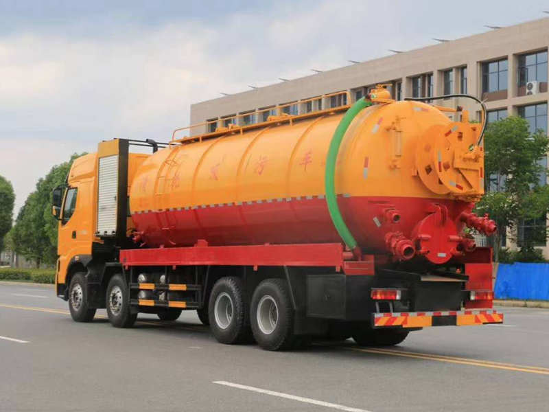 上裝:優質碳鋼8MM罐體,容積約33方(清水7/污水26),兩倉互通,自動液壓絞盤,自帶排污口、排污閥、排氣閥、吸污閥、吸污管,高壓泵,不銹鋼水箱、加大工具箱,前中置140油缸,600液壓門,尾部700液壓開蓋,420馬力付發配SK42水循環泵,嚴格按公告圖片參數改裝,其他標配。