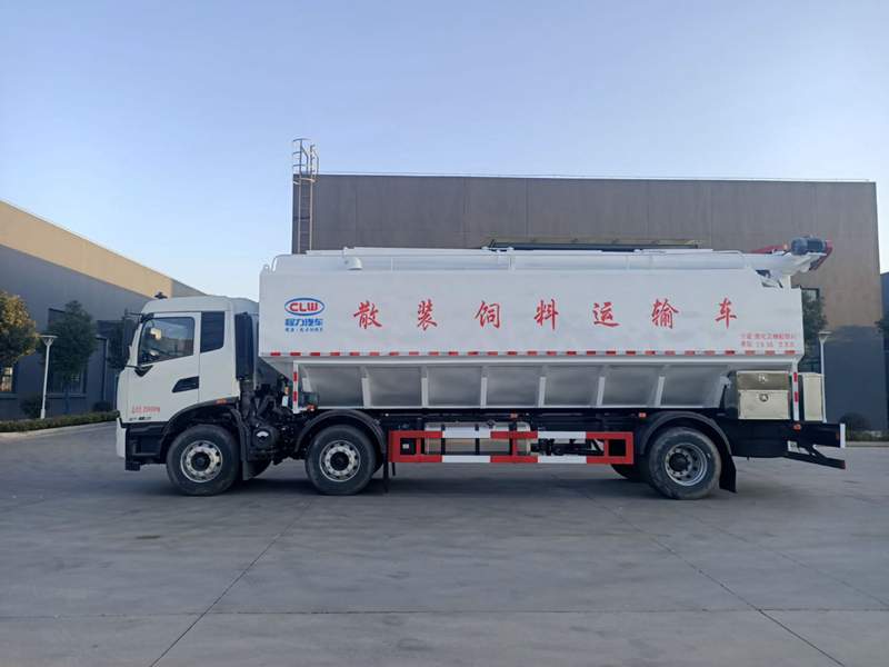東風天錦小三軸散裝飼料運輸車,龍擎260馬力, 法士特8檔變速箱,1995+5000mm軸距,295/80R22.5真空胎,電動門窗,中控鎖,ABS,方向助力,空調,環保+燃油,整車質量10噸,額定載質量15噸。