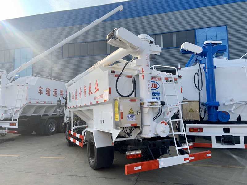 電動:上裝罐體材質(zhì)采用優(yōu)質(zhì)鋼板,整車3條絞龍(底部水平絞龍、尾部提升絞龍、頂部出料絞龍),由3個5.5KW電機(jī)帶動,頂部絞龍用液壓控制舉升,可左右旋轉(zhuǎn)180°。罐體分2倉,可根據(jù)用戶要做多個獨(dú)立分倉,可以獨(dú)立控制各分倉卸料順序和速度,可選擇外接電源驅(qū)動或液壓驅(qū)動絞龍方式,卸料絞龍長7.2米,舉升仰角60度,可左右旋轉(zhuǎn)180度。