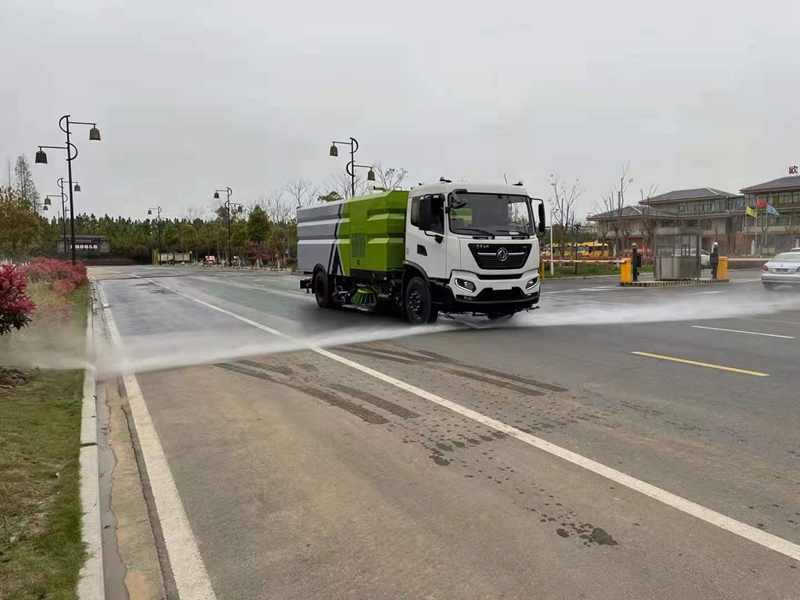 東風(fēng)天錦洗掃車集掃路車、灑水車和高壓清洗車功能于一體,具備路面清掃、路面洗刷、高壓清洗、低壓沖洗、路緣石洗刷、垃圾收集、污水回收、噴霧降塵和道路隔離墻清洗、小廣告清洗等多種作業(yè)功能。具備倒車保護(hù)裝置,在作業(yè)過程中如遇緊急倒車,智能化的控制系統(tǒng)會(huì)自動(dòng)停止作業(yè)并收回掃盤、吸盤和側(cè)噴桿;具有防止舉升垃圾箱翻車保護(hù);具有檢修安全保護(hù)。